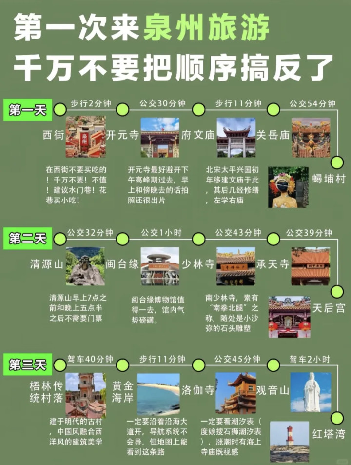 交通攻略:晋江机场/动车泉州站舌尖好意思食:面线糊配油条、石花膏四果汤、姜母鸭、土笋冻(闭眼吃!)住宿提出:西街旧洋楼改良的东谈主皮客栈最好季节:5月满城刺桐花开网友说:在文庙听南音,老阿嬷的琵琶声里藏着整部宋元史!