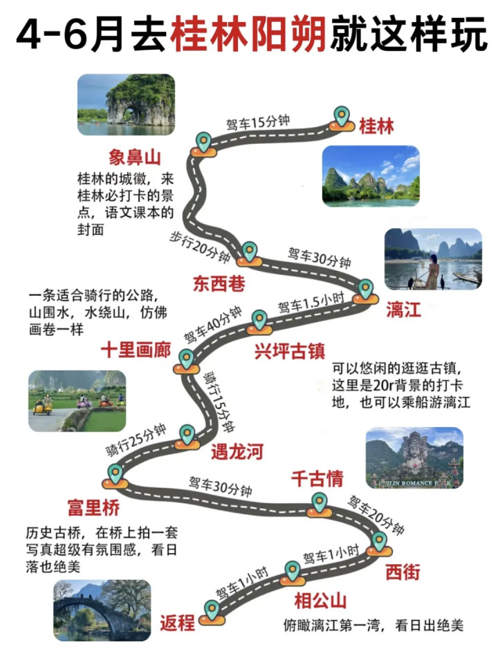 Day1:漓江飘摇→20元配景不雅景台→兴坪古镇