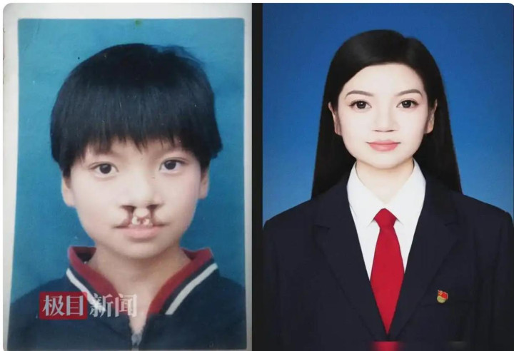 李金娜儿时唯独的像片和如今的登记照对比