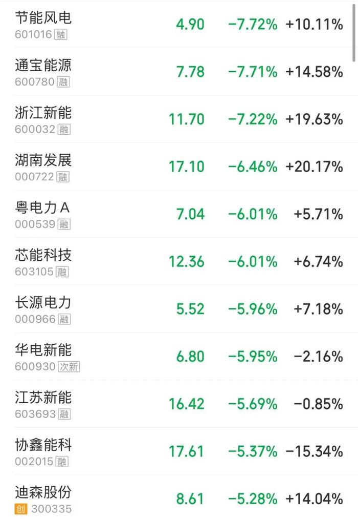 下降方面,电力股迎来调遣,节能风电、浙江新能跌超7%。