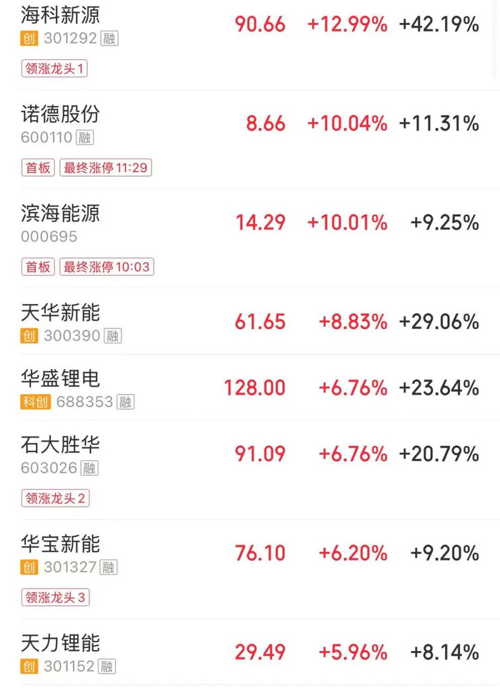 锂电板板块拉升,融捷股份4连板,盛新锂能、江特电机、金圆股份等涨停。