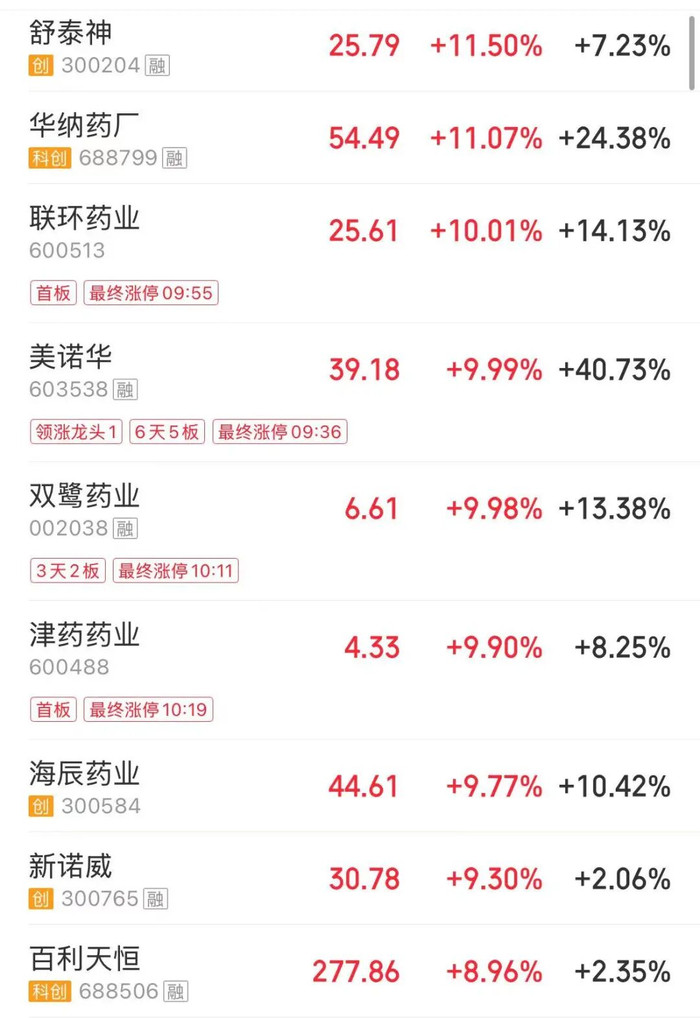 医药股集体走强,开云体育好意思诺华4连板,双鹭药业、联环药业、万邦德等多股涨停。