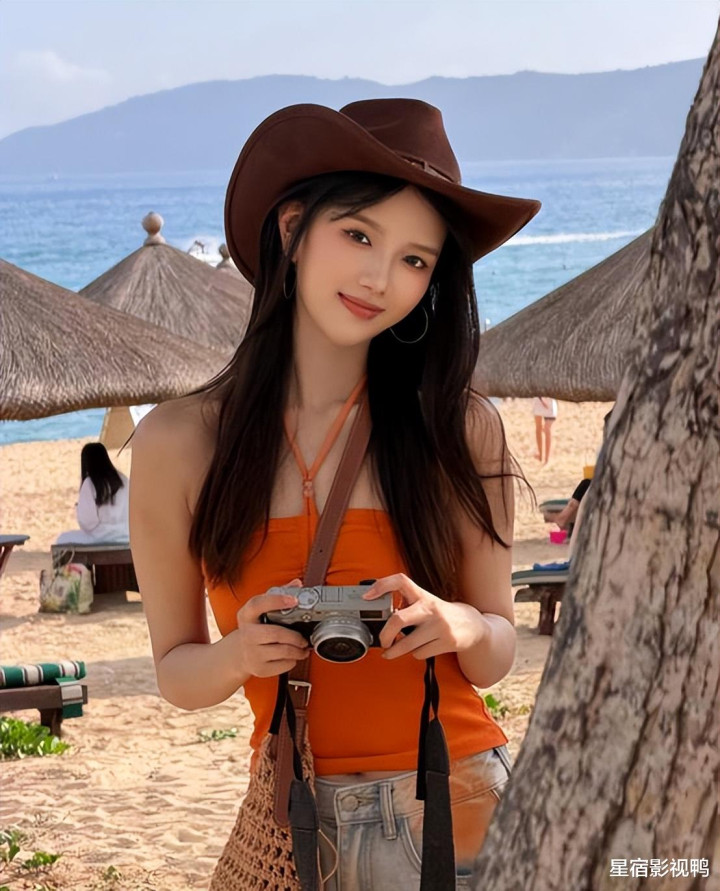 橙色吊带搭配蓝色长裤,牛仔风的造型气质更偏冰寒酷飒,“姐感”太浓了,与都姝判若两东谈主。