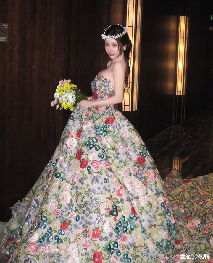比如这套浓妆艳抹的抹胸长裙,她穿起来特殊性感,美艳的配色也充满春日气味。