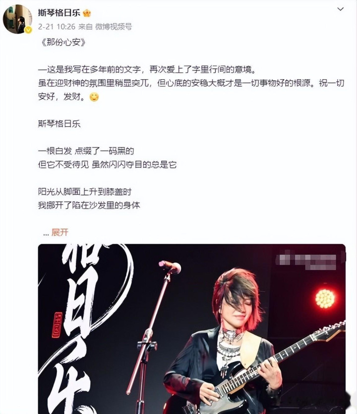 回望斯琴格日乐的泰半生,不错说是被音乐竖立,也被面貌拖沓,她也曾离巅峰那么近,也离山地那么近。
