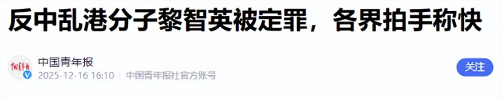 2.《反中乱港分子黎智英被定罪开云体育,各界讴功颂德》2025-12-16 16:10 | 起首:中国后生报