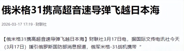 险些是统一技术,俄罗斯也在日本海放出了大招。俄罗斯国防部径直官宣,俄军的米格-31战机挂载着“匕首”广阔音速导弹,在日本海空域完成了例行遨游任务,还进行了空中加油考研。