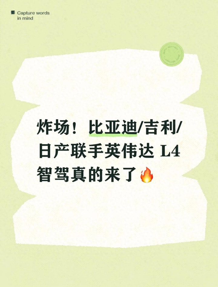 2026年3月的这场地作,注定会被载入汽车与科技行业的汗青。英伟达的AI算力,加上比亚迪、祥瑞、日产等车企的量产智商,让L4级高度自动驾驶告别实验室,肃穆进入量产倒计时。
