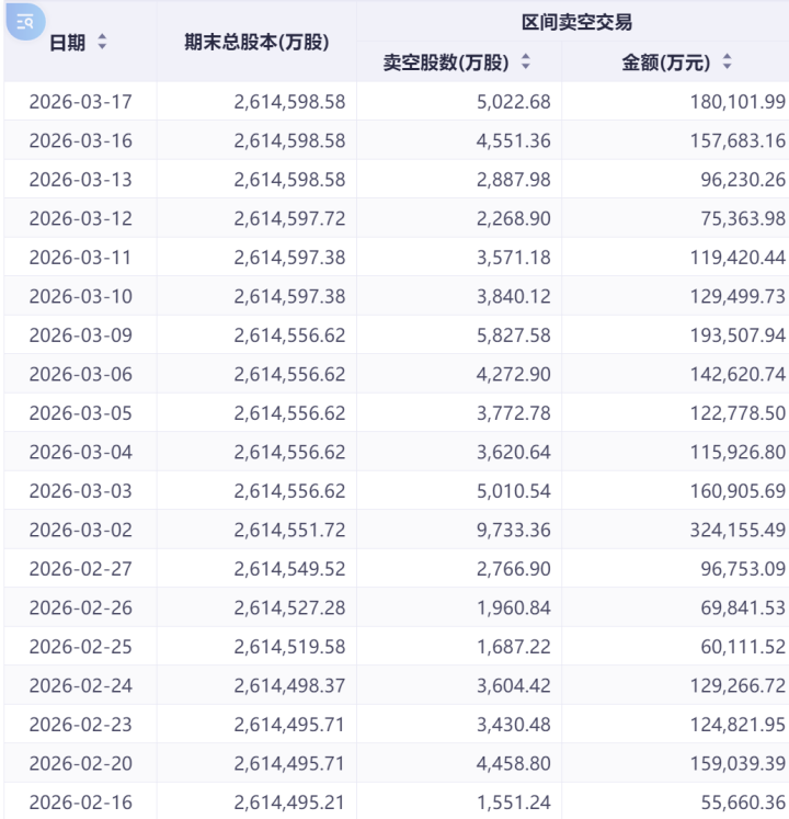 腾讯卖空股数从3月11日的877.92万股大幅降至3月17日的245.38万股,降幅逾七成;而小米、阿里巴巴的卖空数据虽有回落,但合座仍督察相对高位。