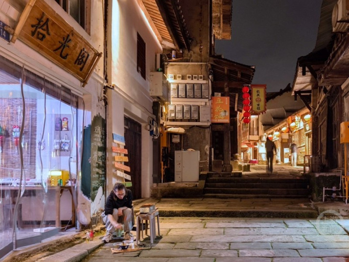 《古镇夜色》组照五。上游新闻签约照相师黄进摄于重庆两江新区龙兴古镇
