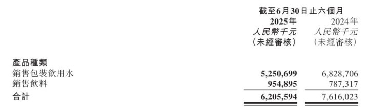 其中,以怡宝皑皑水为主要产物的包装饮用水业务上半年收入由2024年同时的68.29亿元下落至52.51亿元。而永久以来华润饮料近九成营收来自于此,因此中枢包装水业务事迹下滑也导致公司举座事迹承压。