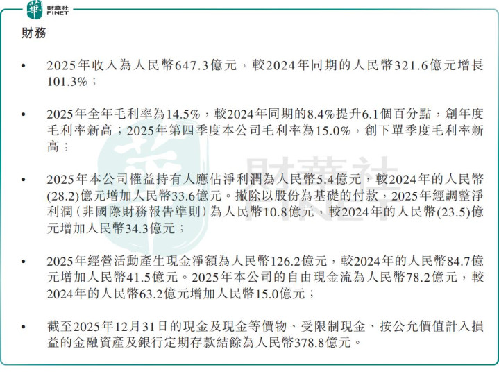 利润方面,年内,公司归母净利润达5.4亿元,而2024年则净失掉28.2亿元,到手实现初度扭亏为盈;若撇除以股份为基础的付款,公司经调养净利润为10.8亿元,较2024年失掉23.5亿元增多34.3亿元,进一步突显了主贸易务的盈利成色。