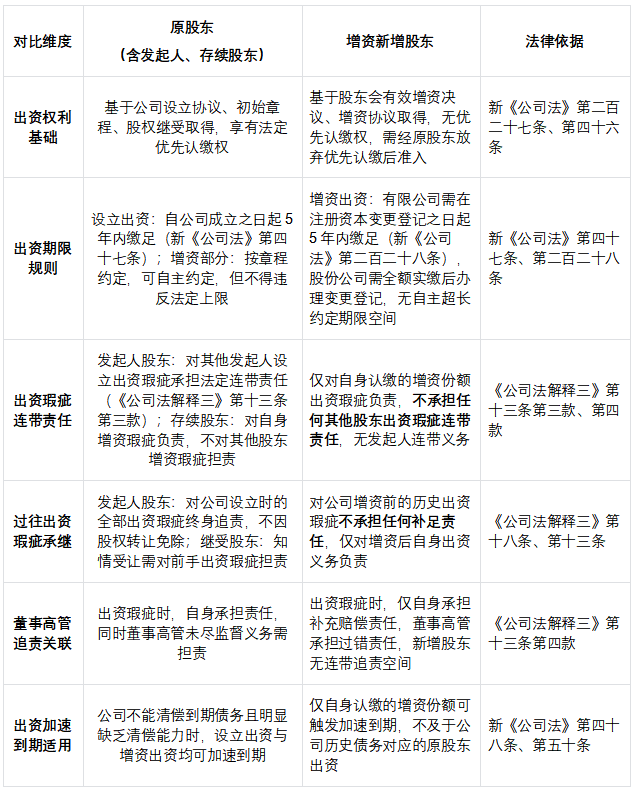 原推动分为公司开导时的发起东谈主推动与后续通过股权转让、接收等样子继受的原推动,其中发起东谈主推动是公司本钱轨制的驱动创设主体,其出资义务源于公司开导当作,对应《公司法》对于公司开导、发起东谈主背负的专项法律施展注解;而增资要领的新增推动,并非公司开导主体,其推动资历与出资义务源于推动会有用增资方案及增资公约,是公司存续阶段的本钱追加主体,适用增资专项法律法律施展注解,不天然承继公司开导阶段的发起东谈主背负。