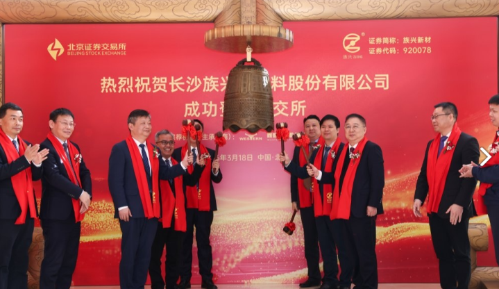 3月18日,来自湖南宁乡的国度级专精特新“小巨东谈主”企业——长沙族兴新材料股份有限公司(以下简称:“族兴新材”)胜利登陆北交所,成为本年湖南首家在北交所上市的企业,亦然年内湖南省首家登陆A股市集的上市公司。