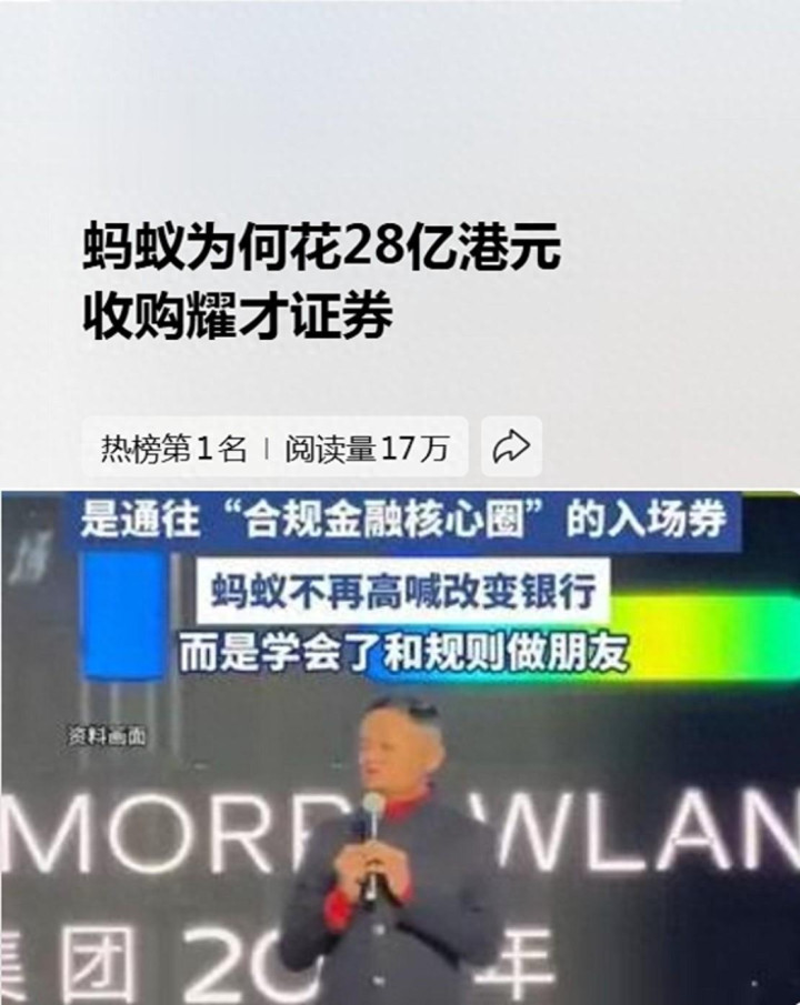 晚上(3月7日)刷手机,头条热搜第一蹦出来:“蚂蚁为何花28亿港元收购耀才证券”。我愣了一下。28亿?买券商?再一看,成交了。