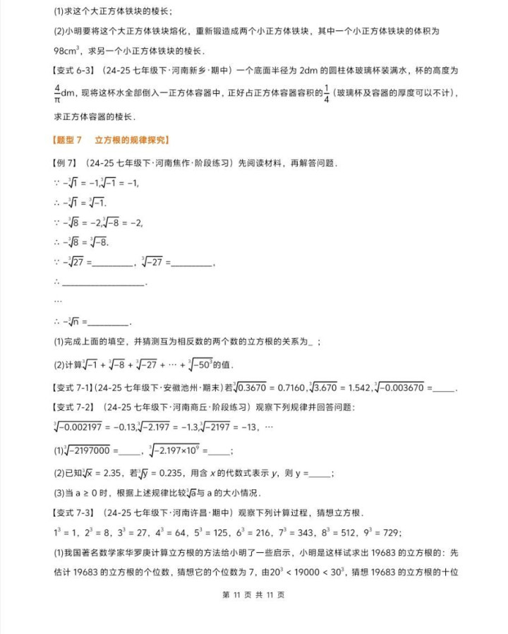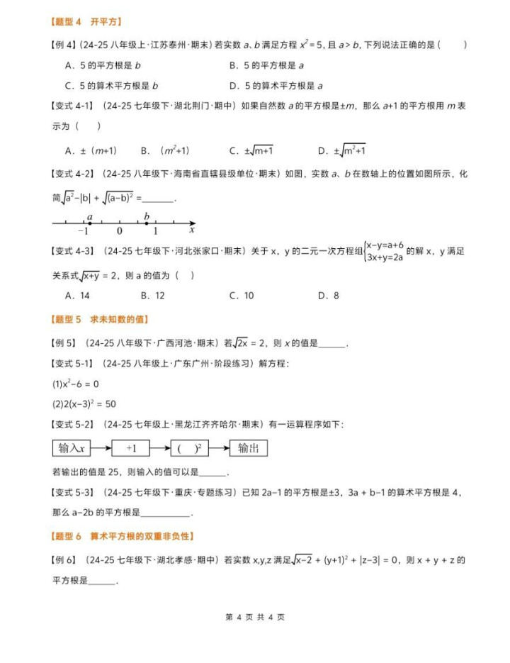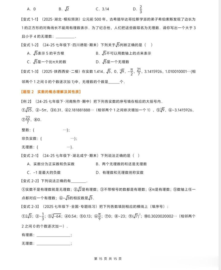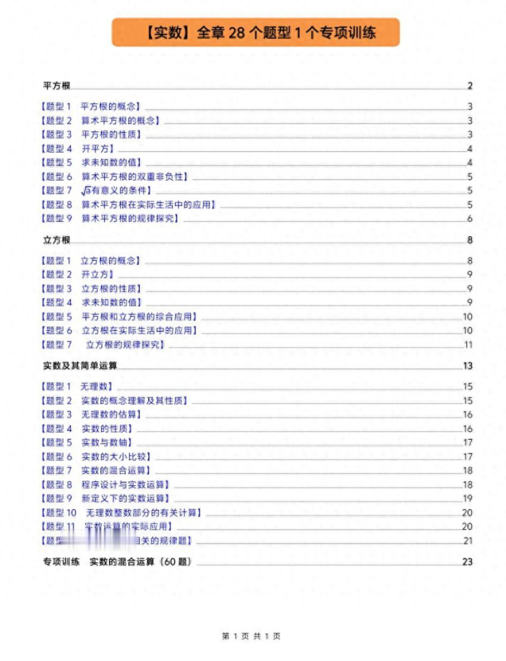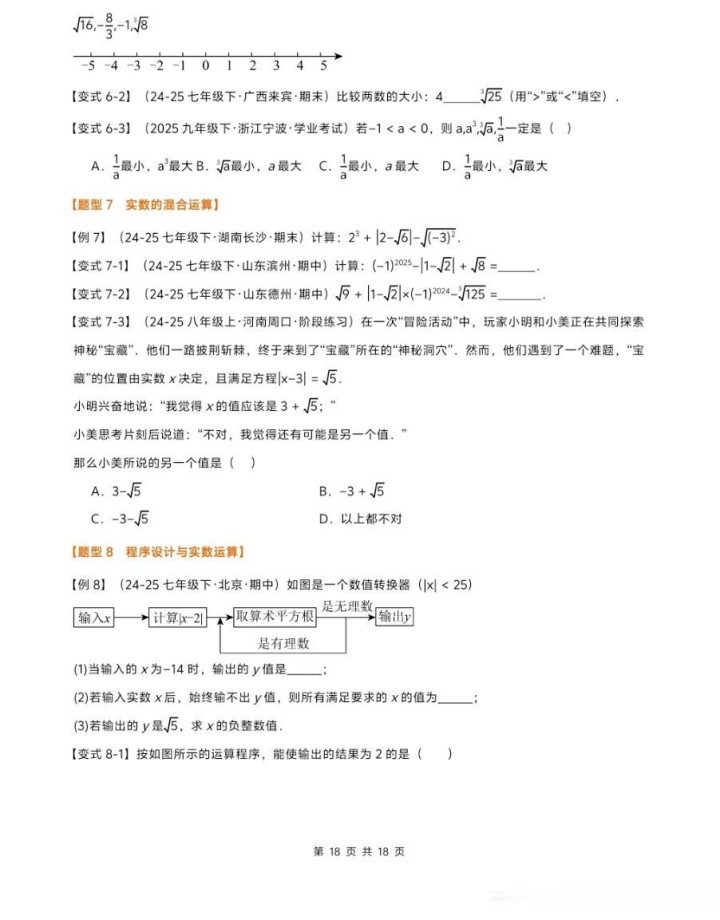 开云(中国)官网 七下数学实数专练, 28种题型, 巨匠多练练