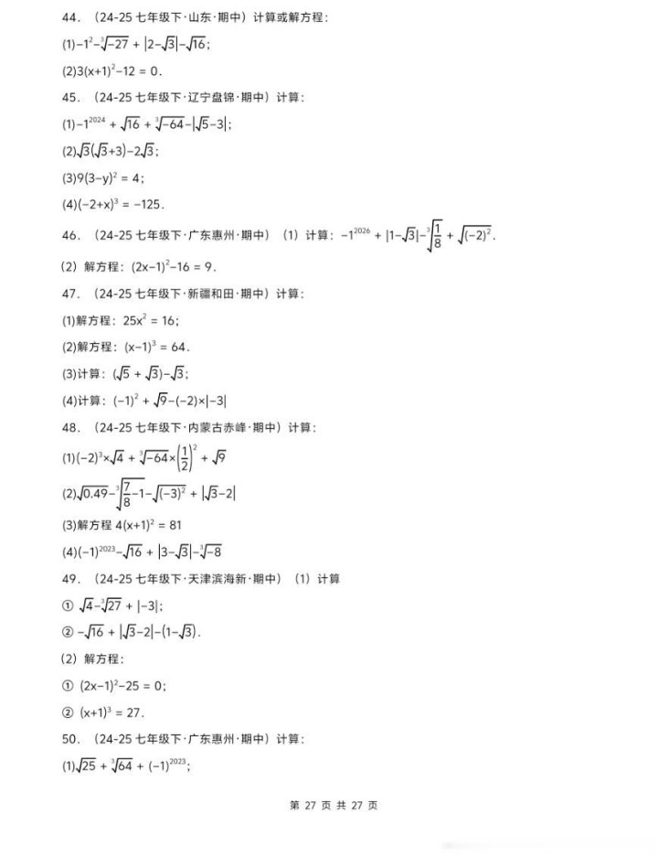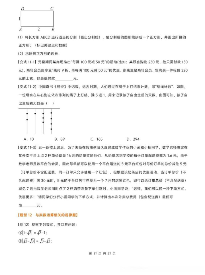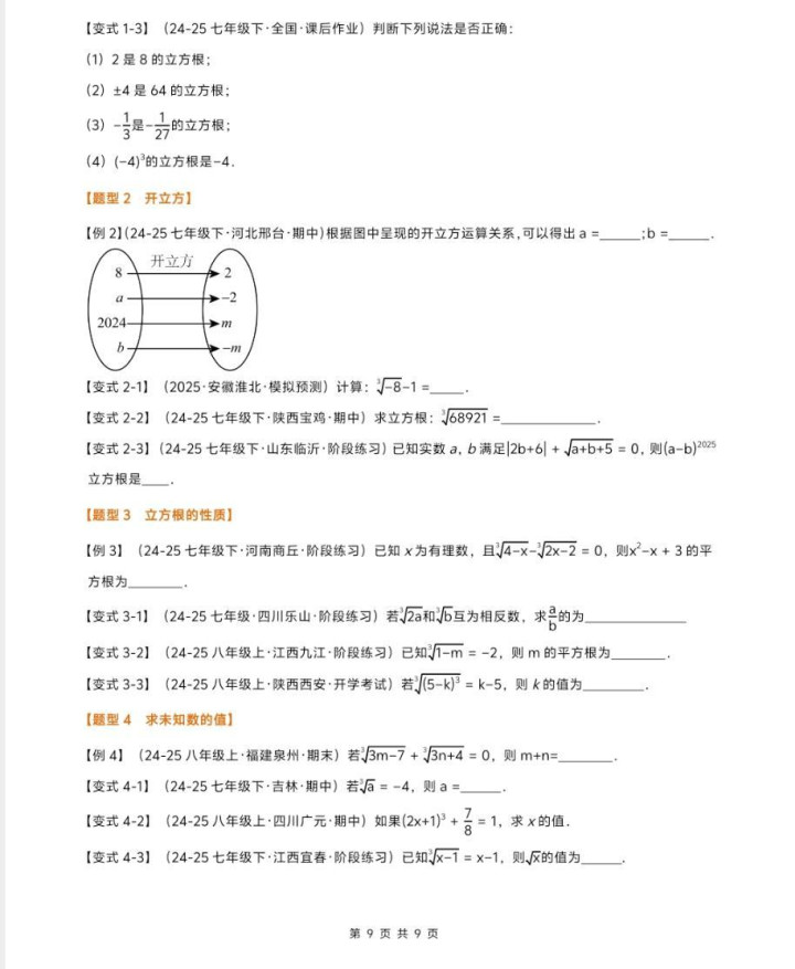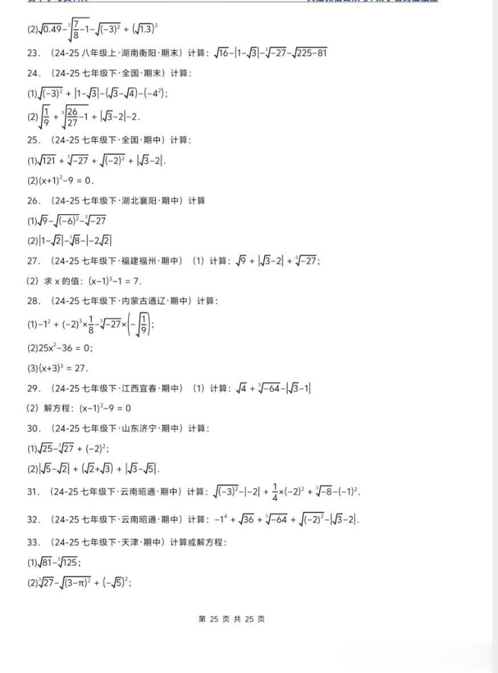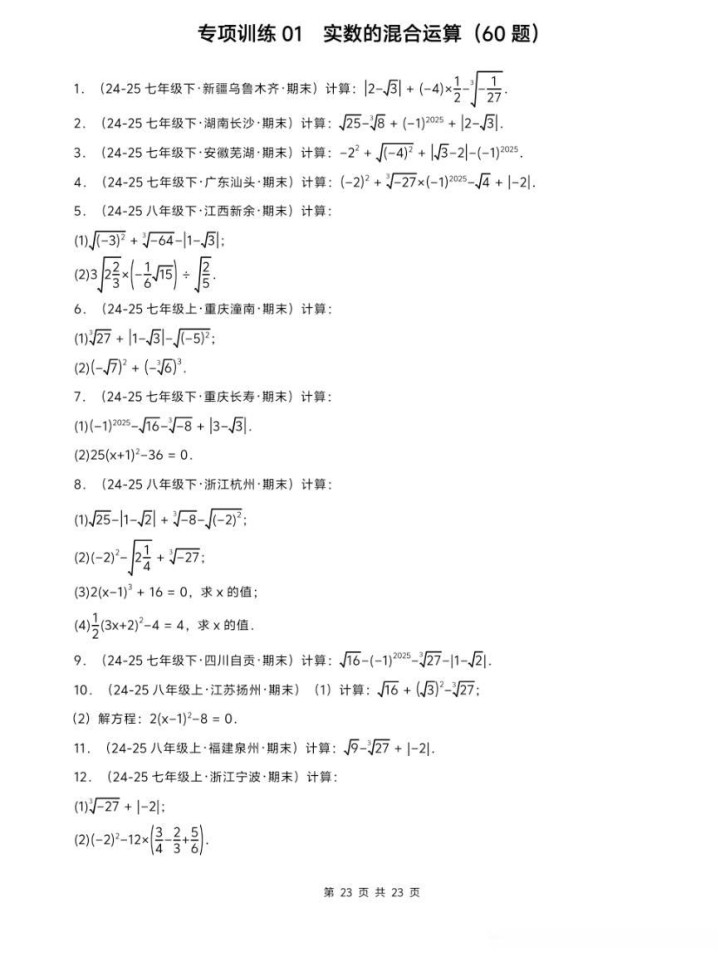 开云(中国)官网 七下数学实数专练, 28种题型, 巨匠多练练