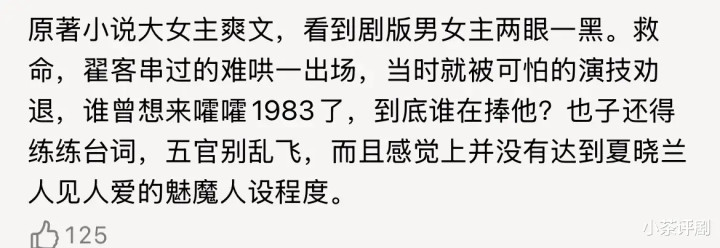 演员适配度较差,女主角不“娇”也不“媚”,更莫得原著中的好体魄;男主角就愈加了,与原著中周诚的东谈主设与气质险些是两模两样的。