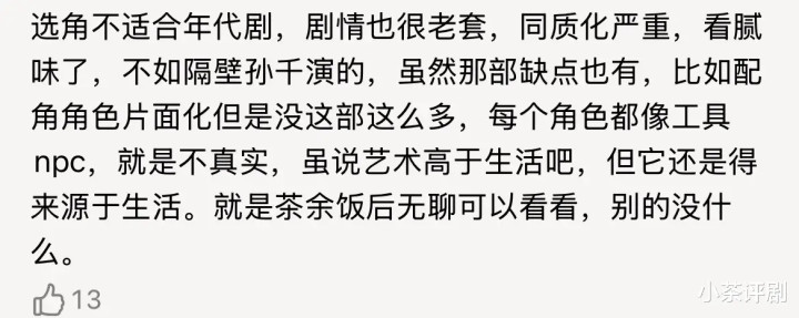 老戏骨的演技一如既往的好,但两位主演的台词还要多练练,演技也有待晋升。