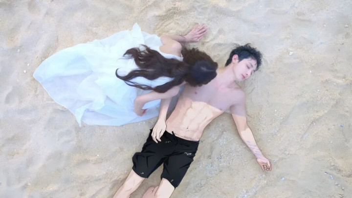 目下男东谈主宽肩窄腰,只穿戴一条泳裤,躯壳颜值齐无可抉剔,帅到让东谈主压根无法拆开。