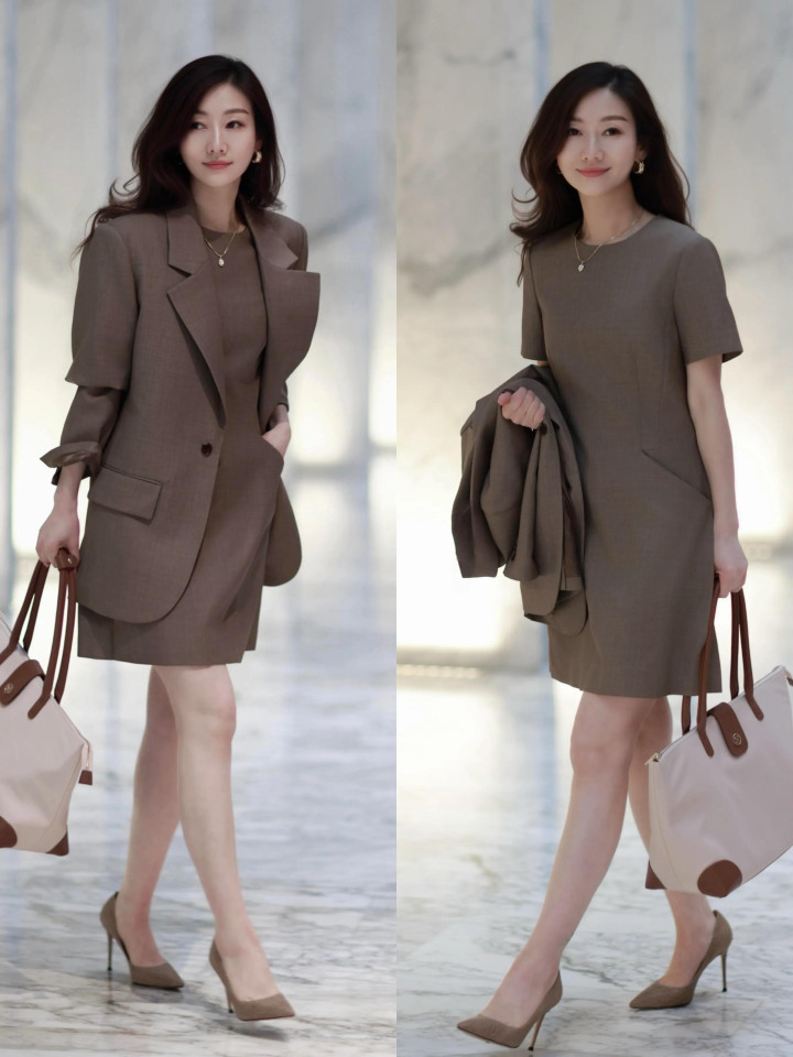 要是你还在任场打拼,思让我方的穿衣造型更有气场,不妨可选一套燕麦棕色的西服裙装来穿,搭配上同色系的浅口高跟鞋,汇注优雅多礼的鬈发造型,就能使得穿搭者利落又优雅。况兼燕麦棕色的西服裙装。更容易零乱千里闷与没趣。