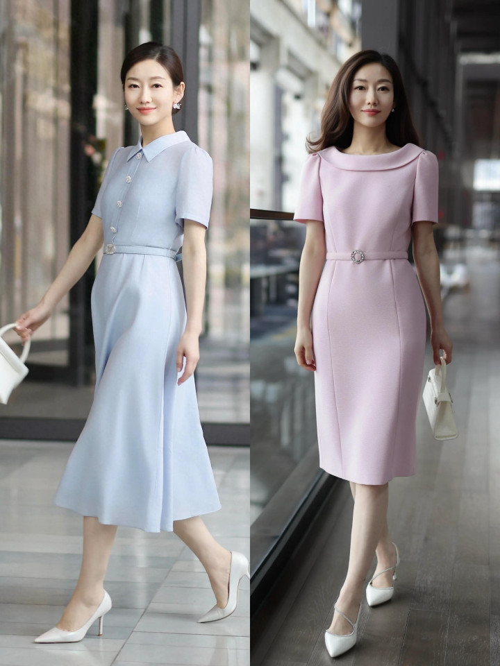 额外是奔三奔四的女性,选拔一条雾霾蓝的衬衫连衣裙,配上白色的浅口单鞋,干净优雅。或是选拔一件粉色的连衣裙,配上白色浅口单鞋,青娥感自显,不消刻意装嫩,呈现造型当然又良好。