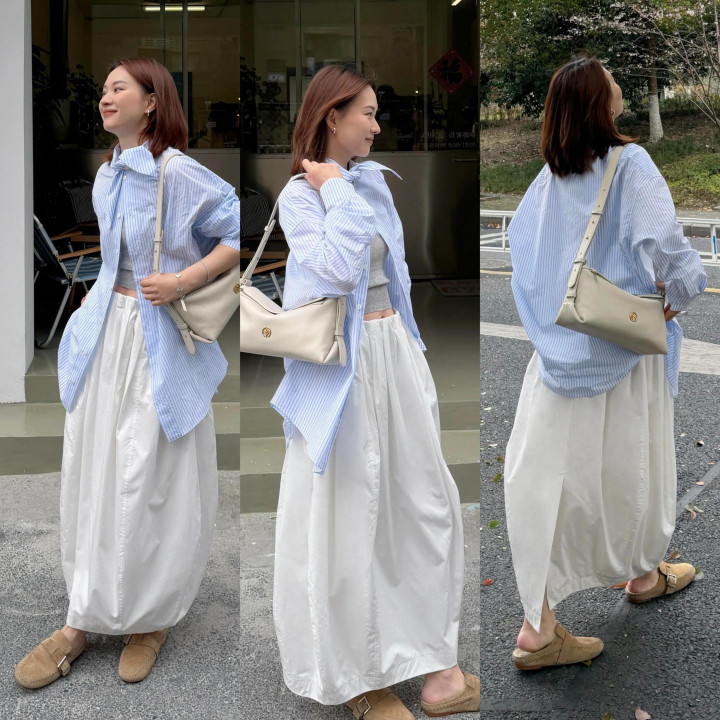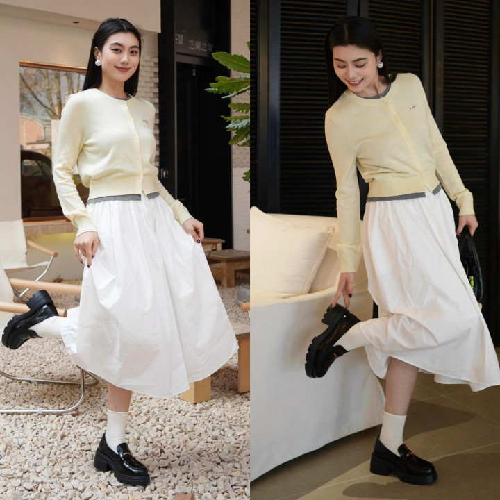 Tips④:浅黄色开衫+白色伞裙