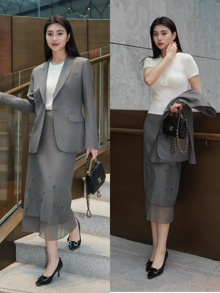 比如上头这一套开云(中国)官网,灰色西服裙装内搭白色古道衫,脚踩玄色浅口单鞋,这样的打扮有筹画,通勤斯文。况兼,灰色的西服裙装还能弱化持重感,看起来更显高档,不刻板。