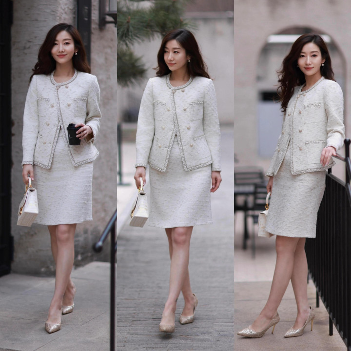 偏疼穿衣造型更显耀气,不妨选拔一套白色的小香风裙装来穿搭,更适配,能让东说念主看起来更显腾贵。况兼白色不挑东说念主,不挑肤色,不挑年事,谁穿谁顺眼,也经得起技术的西宾,也不会跟着技术或是潮水而过期,经典耐看。