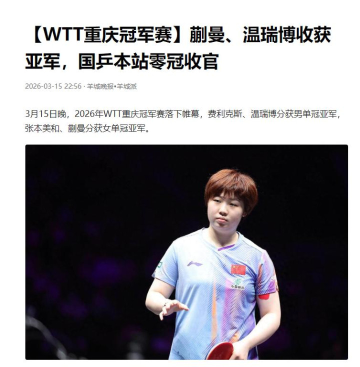 这亦然本年以来,国乒第二次在海外赛事上零冠收官。