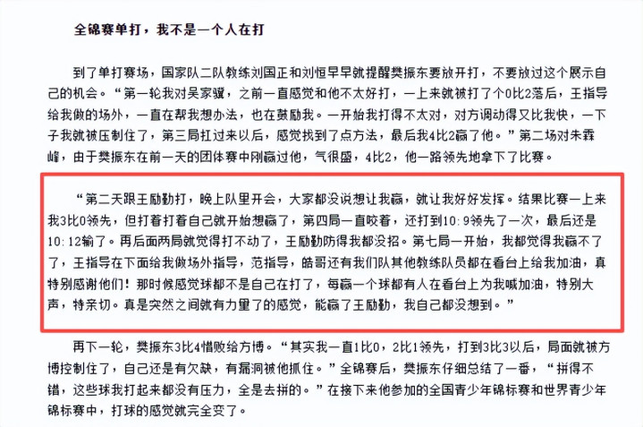 可能说唯有濒临樊振东的时候,我不错放下来,因为我合计阿谁时候他比我强。