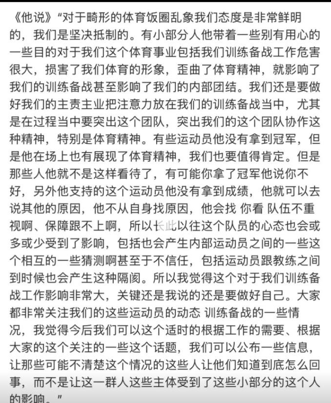 王励勤在近期采访中曾经明确责问极点饭圈活动。