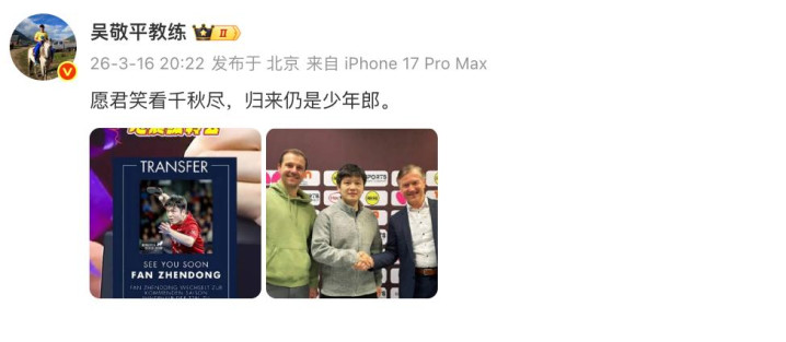 如今,樊振东转会,吴设备留住了这么一番话: