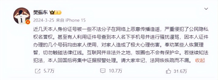 阿谁时候,他的身份证又被坏心传播。