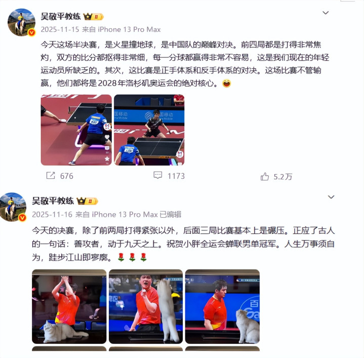 旧年全运会时间,他一直皆在关注樊振东的比赛,发布了多条动态。