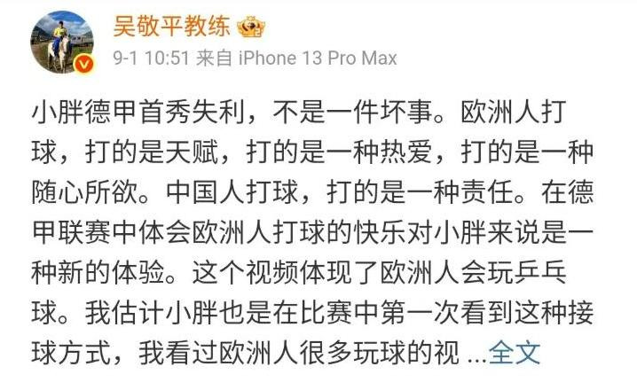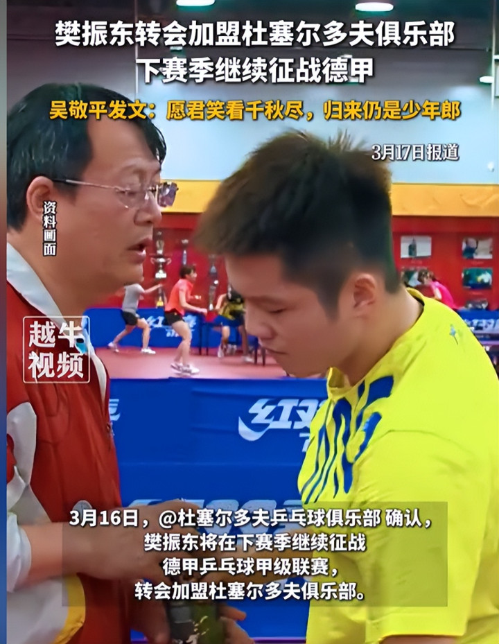 包括樊振东赴德打球这件事,吴敬平也很撑执爱徒的决定,频频关注比赛。