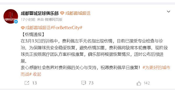 当成齐蓉城球迷还在试吃上轮中超的稳固大捷时,一纸伤情公告如冷水浇头,锋线中枢费利佩因左手无名指骨折,将缺席本轮转折接触!这位巴西外助的短暂倒下,不仅让球队夺冠远景蒙上暗影,更撕开了中国足球“重收货轻保险”的凄迷伤口,若何看他的受伤?