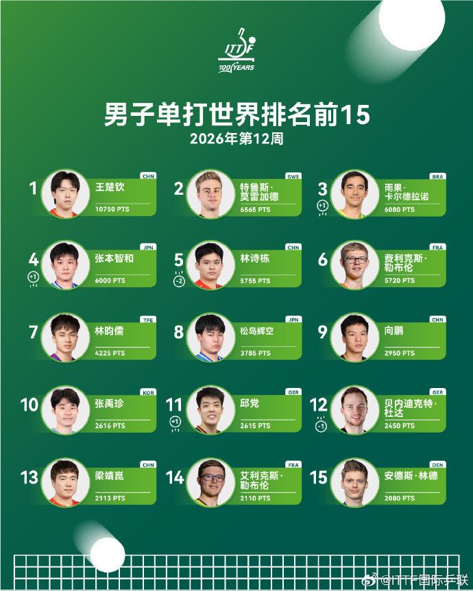 总体来看,海外乒联2026年第12周寰球名次,成绩最大的便是就温瑞博,他在4-2降服张本智和之后一战成名,同期其寰球名次不仅飙升飞腾10个位次,飞腾到第17,同期创造个东谈主办事生活名次记载。要是捏续保捏和擢升情状,置身TOP10仅仅技能的问题,让咱们期待他的好音书。