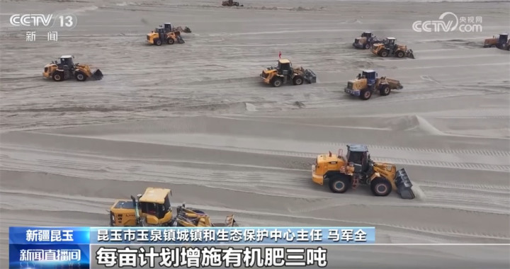 在新疆昆仲市玉泉镇的平沙现场,推土机、挖掘机在沙海间穿梭功课,将转变的沙丘一一推平,规整成片。针对沙漠缺水、泥土勤奋的近况,当地同期驱动沙漠平整与滴灌管网建造、泥土改造等使命。