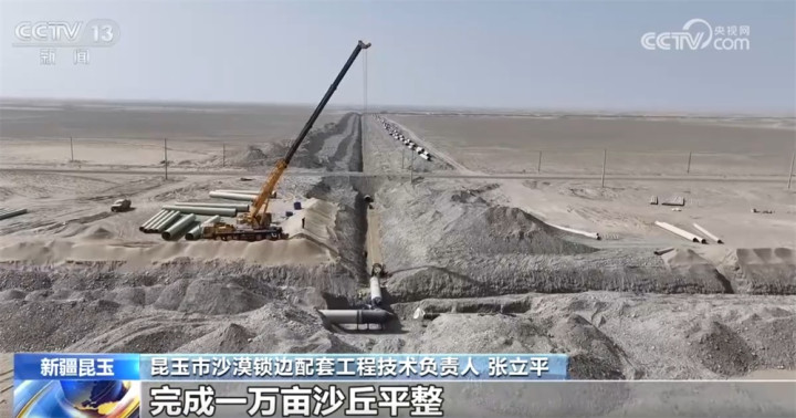据昆仲市沙漠锁边配套工程本领细致东说念见识立平先容:“当今,咱们完成了沙漠地皮的粗平工程,接下来进行管说念的铺设和通水使命,目标在4月10日之前完成一万亩沙丘平整,达到莳植条款。”