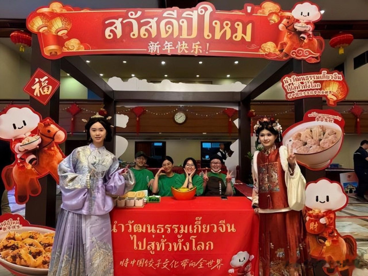 行径现场,品牌泰国门店使命主谈主员现包现煮手工水饺,为现场带来“炊火气”澈底的中国新春氛围。品牌还挑升打造马年新春主题档口,身着明制汉服的职工为嘉宾讲解饺子的由来与春节风气,从制作时候到文化内涵,让宾客在回味好吃的同期,感受中国饺子文化的独到魔力,末端了从“舌尖”到“心间”的精神共识,让中国滋味成为中泰友好疏通中最顺心的共情纽带。