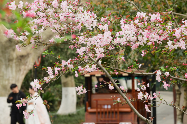 3月17日,开云体育官网杭州湖滨公园的垂丝海棠连续开了。里尔摄