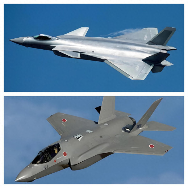 仅F-35A/B具备隐身技艺(RCS约0.05㎡),F-15J/F-2无隐身研究